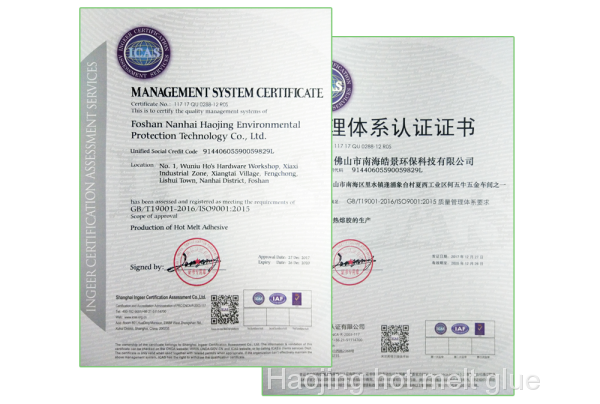 Deqing County Haojing Environmental Protection Technology Co., Ltd is one of the leading companies in China's hot melt adhesive industry. It was founded in 2002 and is located in the industrial park of Zhaoqing City, Guangdong Province. It covers an area of about 30 acres and has a plant area of over 20,000 square meters. It is a private economic entity integrating independent research and development, design, production, sales and service. Now the company produces 40,000 tons of environmentally friendly hot melt adhesive products with EVA and resin as the theme material. It has been rated as a national high-tech enterprise. The factory has passed the ISO9001 international system certification, has obtained ISO9001-2008 quality certification, and has developed the HSE standard management system (health, safety, environmental protection). It has been tested and certified by the authoritative certification testing organization SGS, ITS, and the company's hot melt adhesive products meet the requirements. The European Chemicals Agency has 58 substances of high concern (SHVC) content and REACH regulations. It meets the requirements of the EU RoHS Directive, does not contain phthalate, heavy metals, etc., does not contain toxic substances and harms the ozone layer, and meets strict environmental standards such as EN71-PART3&PART9, ASTMF-963A. The raw materials used are in compliance with the FDA (American Food and Drug Association) Treaty 21 CFR 175.105 "Adhesive". Its excellent performance and excellent quality have optimized and improved the traditional industry and promoted the development of China's hot melt adhesive industry. With the fierce competition in the market, the company has gradually grown and expanded. At present, a well-established sales service network system has been formed at home and abroad, and the after-sales service is timely, accurate and efficient. Provide customers with the best products and services. It has won a good reputation and high prestige for the company. At present, Laijing has formed a leader in the industry, and its production scale and production capacity rank first in the world.
